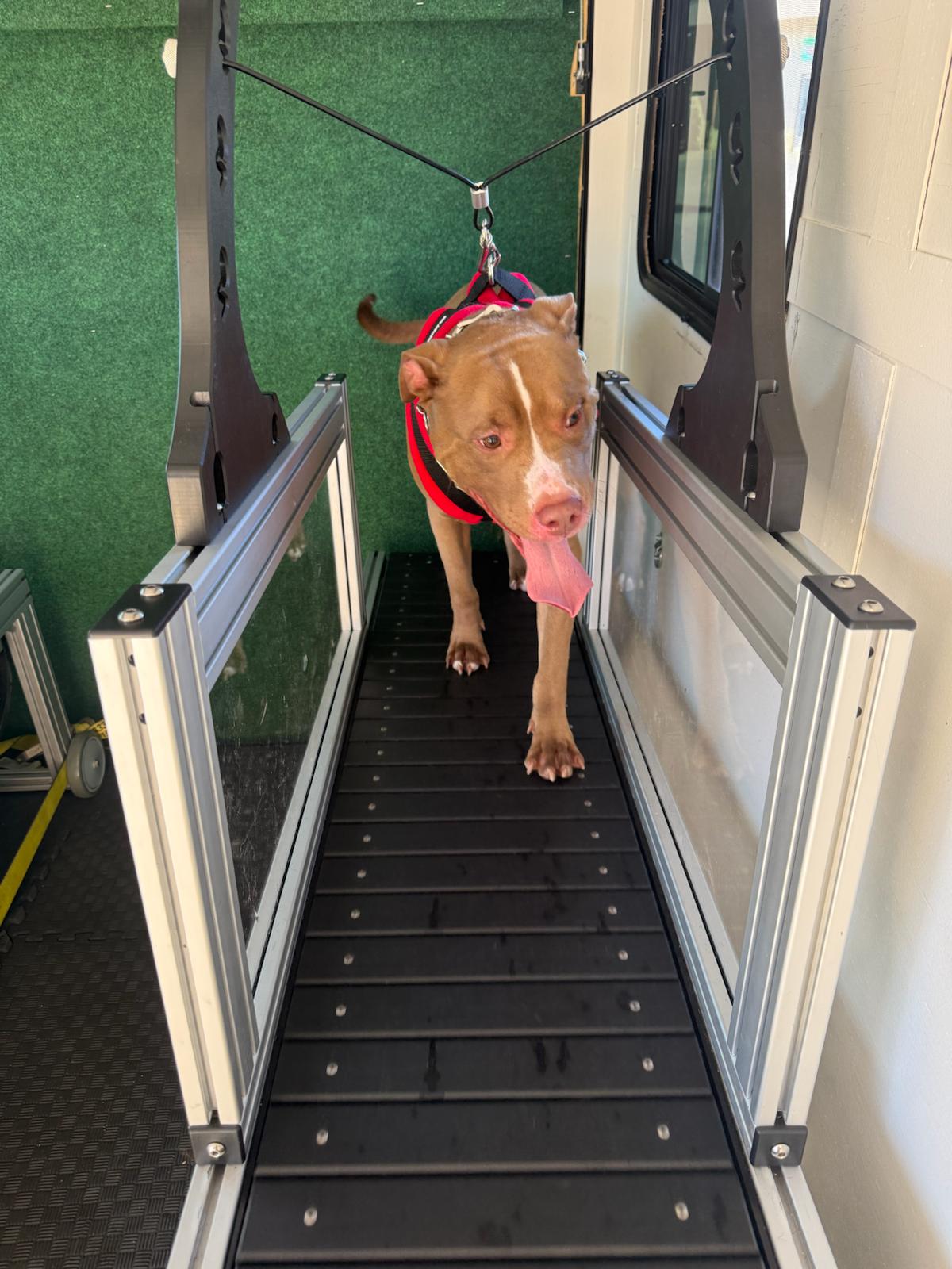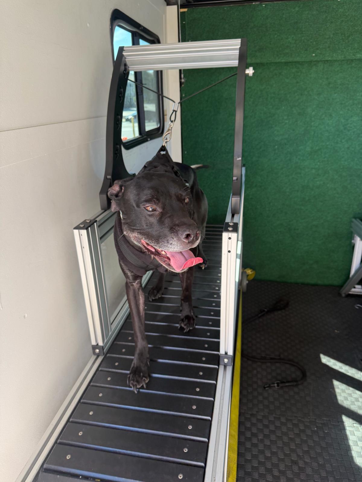 A new and exciting way to keep your dog healthy, active, and happy! Our mobile gym is a fully climate-controlled trailer equipped with non-motorized treadmills (slatmills), designed so your dog can run naturally and safely at their own pace. Unlike a simple walk, running activates more muscle groups and promotes better overall health. It’s the best 30 minutes of your dog’s day—fun, safe, and full of energy!